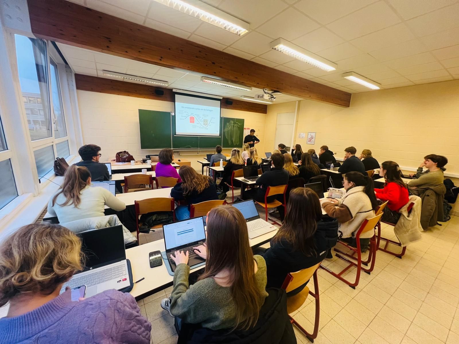 Op de laatste schooldag van het jaar een schoolpostje: Zoals elk jaar werden Kenny en Mattijs uitgenodigd om gastcolleges te doceren. Dit aan de laatstejaarsstudenten Bachelor Financiën & verzekeringen - Immobiliën & verzekeringen - Kortrijk.
