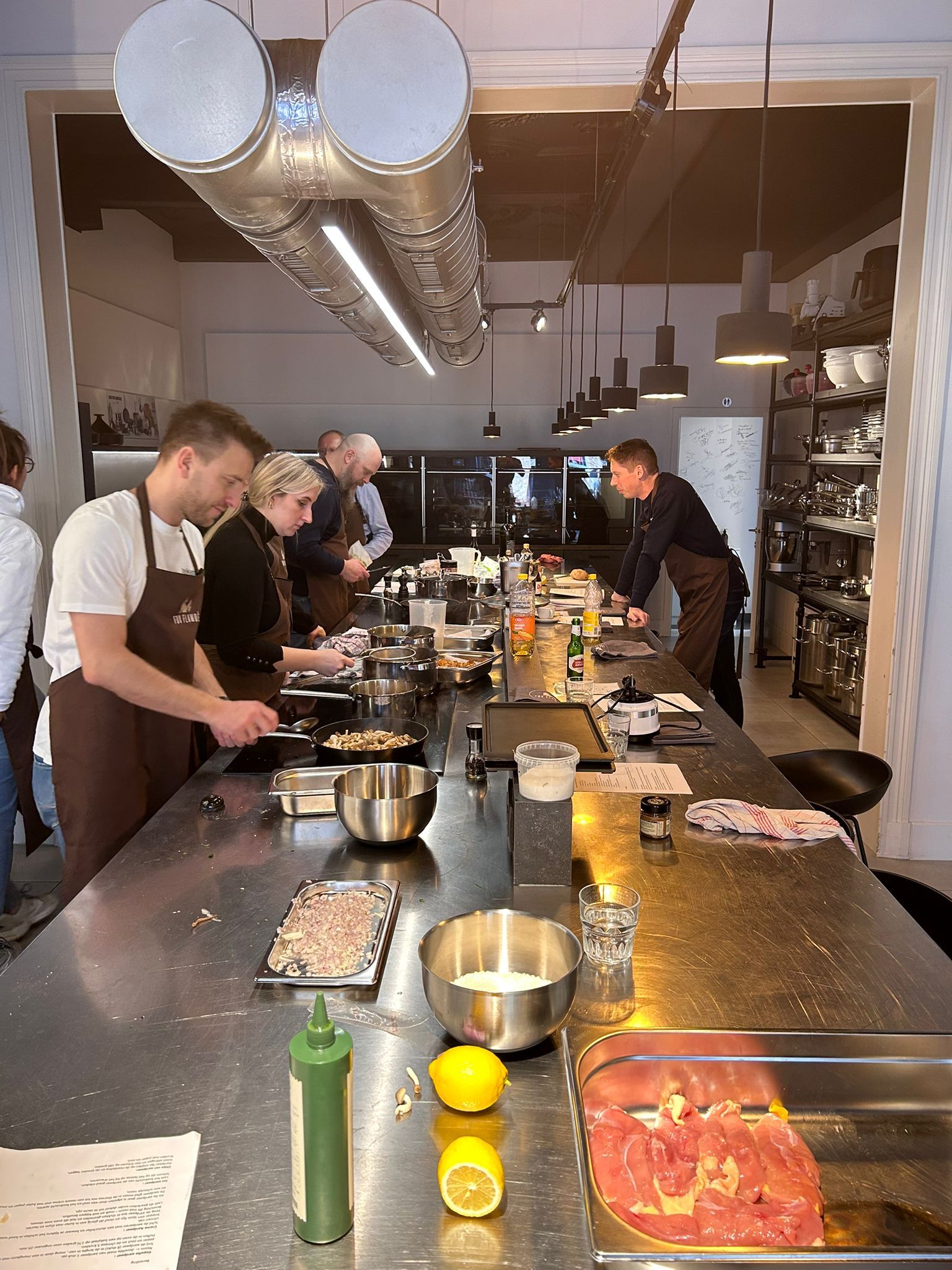 Samen met chef Diek Vanheerentals maakten een volledig menu klaar, nadien mochten we proeven en samen gezellig eten. Van een echte teamsfeer gesproken. Samen met het team maakten we: